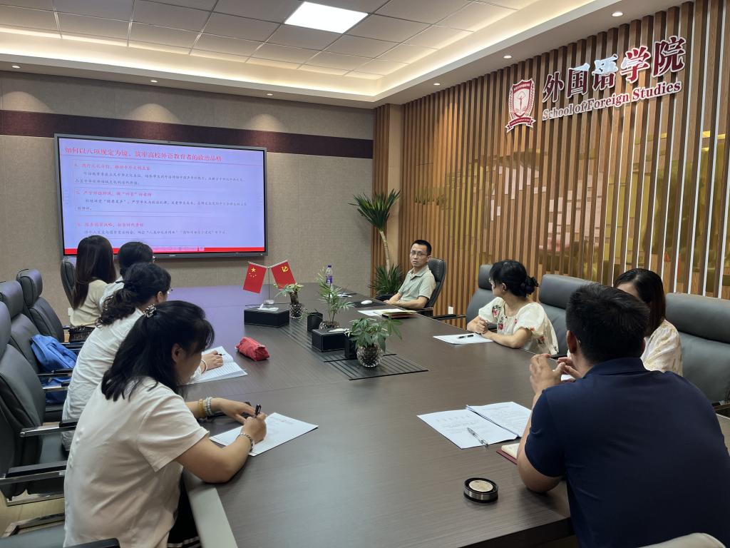 为深入学习贯彻习近平总书记关于加强党的作风建设的重要论述和中央八项规定及其实施细则精神,持续加强党的作风建设,推动学习教育走深走实,7月4日上午,学院院长冯正斌为联系党支部——日语系党支部全体党员讲授“以八项规定为镜 筑牢高校外语教育者的政治品格”专题党课。