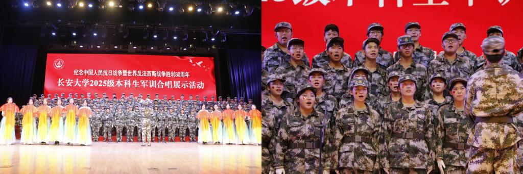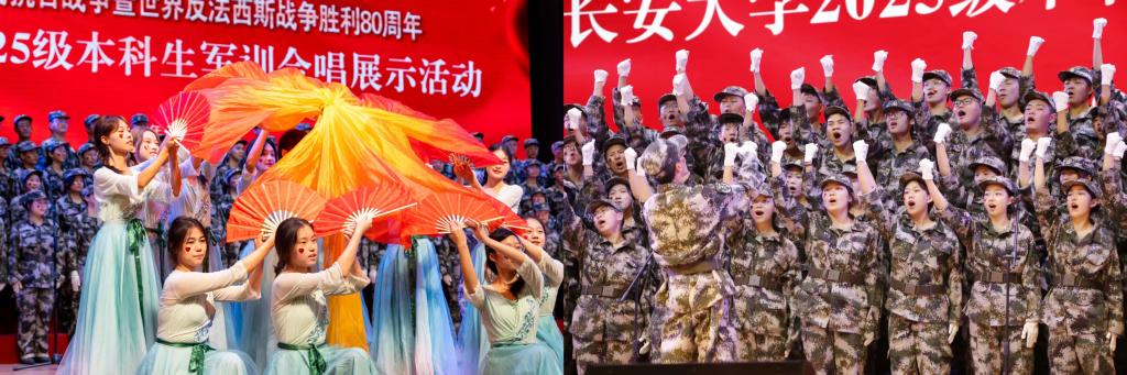 学校组织的纪念中国人民抗日战争胜利暨反法西斯战争胜利80周年合唱比赛,得到了外国语学院25级新生的热烈响应。他们在军训的紧张节奏中,挤出时间积极筹备。从《弹起我心爱的土琵琶》的抒情悠扬,到《敢当》的坚定有力 ,新生们用两首经典歌曲,重温那段波澜壮阔的抗战历史,抒发对先烈的缅怀与敬意,更以青春之声唱响新时代青年的责任与担当。他们的歌声如同一团团火焰,点燃了军训场上的爱国热情,也让这段军训时光有了更深刻的精神内涵。