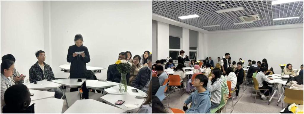 At the beginning of the gala, students drew one of the five thematic tokens—"Filial Piety", "Friendship", "Autumn Chrysanthemum", "Dogwood", and "Kite"—upon entry, and seated themselves in groups according to their tokens, instantly creating an immersive cultural atmosphere. As members of the Traditional Chinese Culture Society played melodious traditional Chinese music, the gala officially kicked off. The gentle and graceful ancient tunes seemed to narrate the poetic charm and profound significance of the Double Ninth Festival in autumn, immersing all teachers and students present in the beauty of traditional melodies.