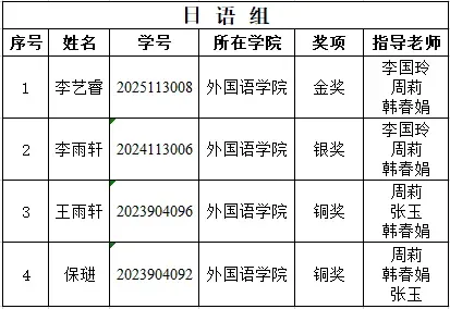 我校有4名学子晋级省赛,同学们凭借扎实的外语功底与出色的综合素养,在省赛25所高校近百名参赛选手中表现亮眼,获得了“一金一银两铜”的优异成绩。