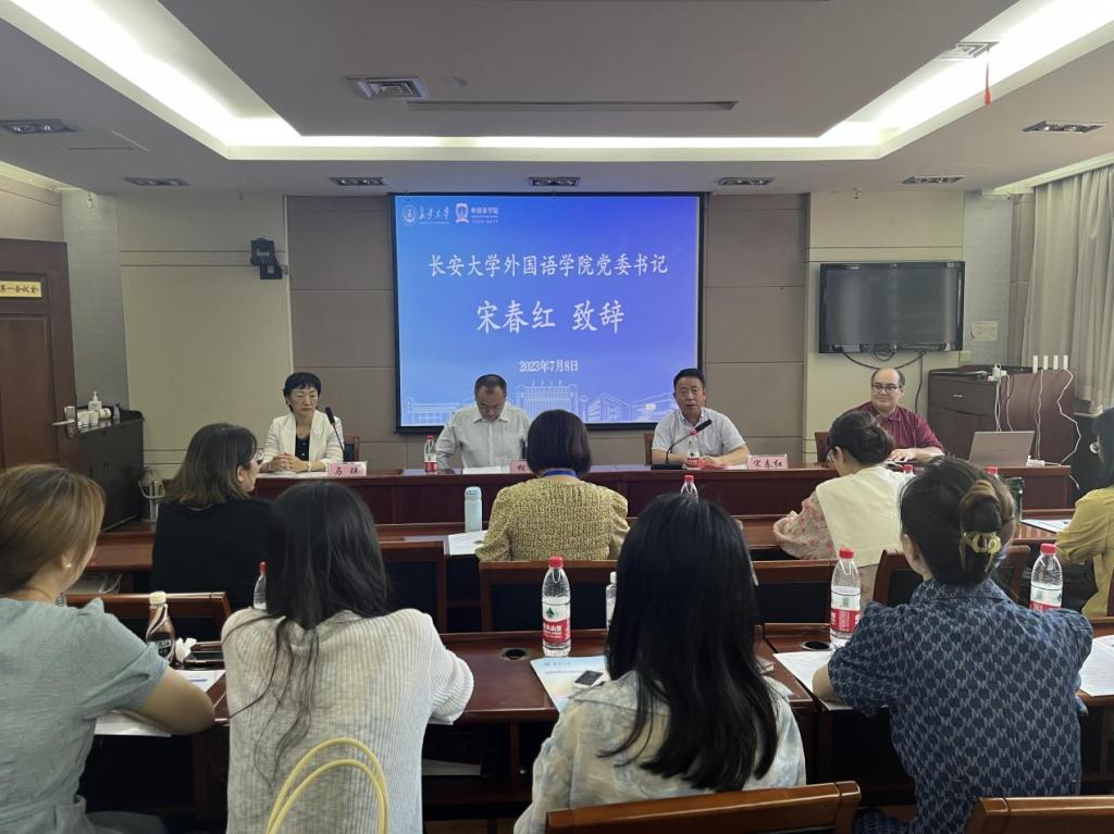 开班仪式上,宋春红书记对北京外交人员服务局运驰国际文化教育中心和陕西省国际交流与留学服务中心对我院的信任与支持表示衷心感谢,并从人才培养、科学研究、学科建设、国际合作与交流等多个方面详细介绍了我校和我院的基本办学情况。他表示,培养具有全球视野和世界眼光的高层次国际化人才,是高等教育国际化的核心所在,相信为期两天的培训必将给各位老师带来新观察、新发现、新思考。愿短暂的学习交流成为陕西外语界同仁们新的发展之机,赓续情谊,奋楫扬帆,在古长安的这片沃土上,与各兄弟院校同仁“长安复携手,再顾重千金”。
