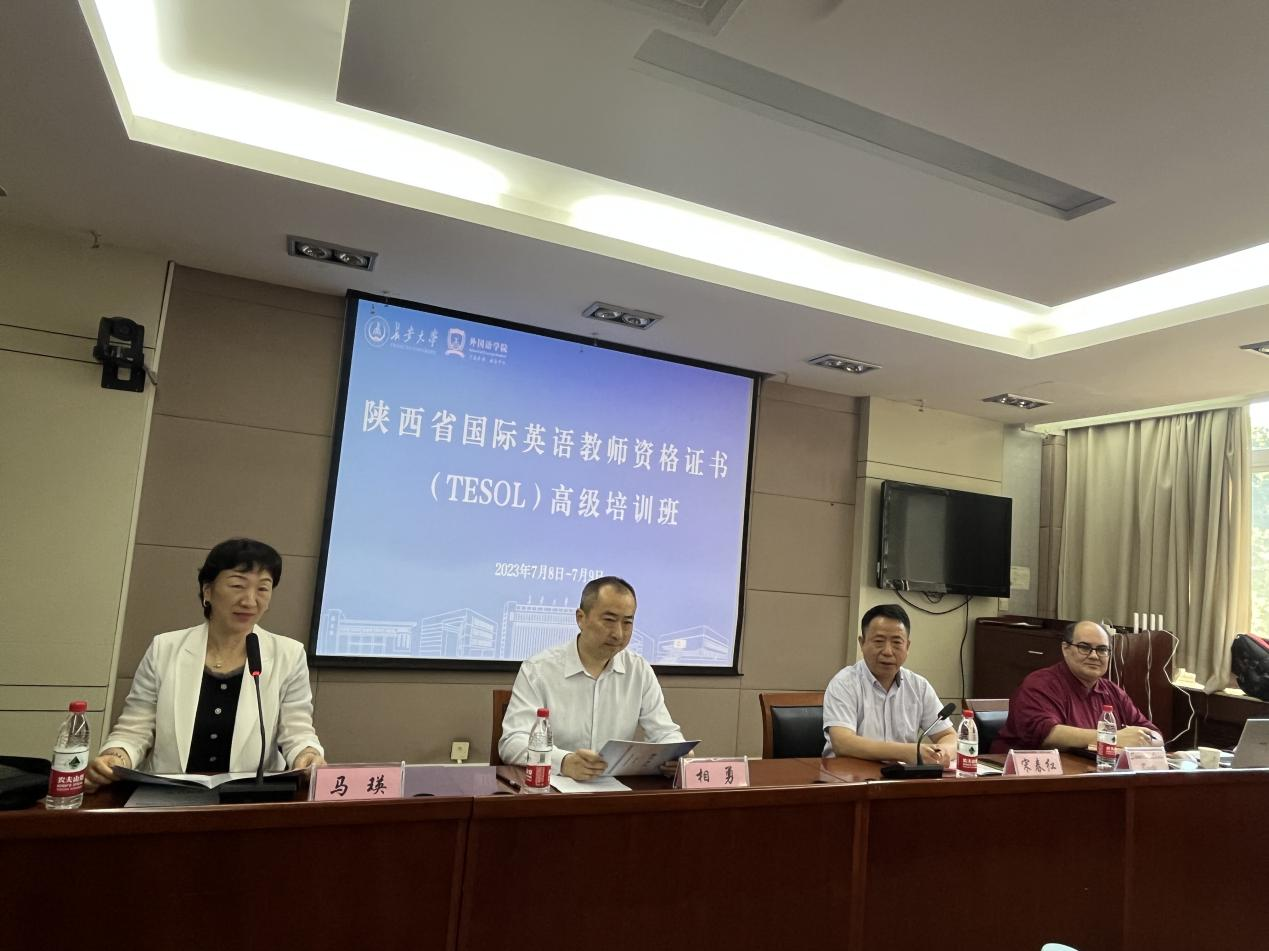 7月8日至9日,由北京外交人员服务局运驰国际文化教育中心、陕西省国际交流与留学服务中心共同主办,我院承办的“陕西省国际英语教师资格证书培训会”在我校南校区学术交流中心成功举办。陕西省国际交流与留学服务中心主任相勇、圣路易斯华盛顿大学塞缪尔·路易斯.班迪副教授、外国语学院党委书记宋春红出席开班仪式,开班仪式由马瑛副院长主持。