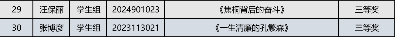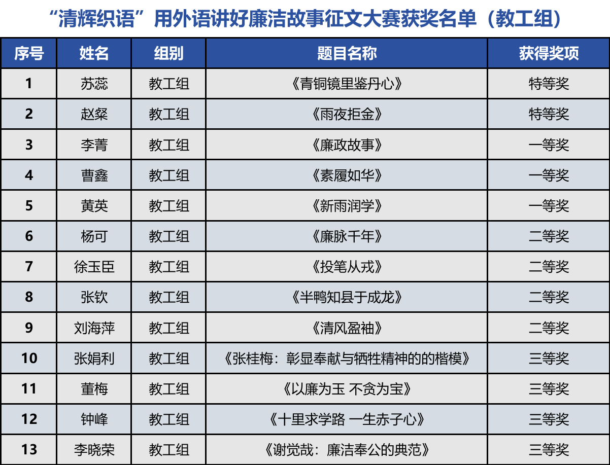 本次征文活动分为教工组和学生组,比赛秉持公平、公正的原则,经过评审,教工组评选出特等奖2项、一等奖3项、二等奖4项、三等奖4项,学生组评选出特等奖3项、一等奖5项、二等奖9项、三等奖13项。
