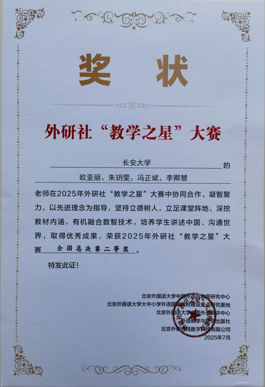 近日,2025年外研社“教学之星”大赛(FLTRP Star Teacher Contest)传来捷报,开元网页版欧亚丽教师团队表现突出,荣获全国总决赛二等奖。