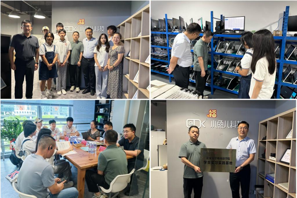 在小鱼儿科技有限公司,张永一行在公司负责人张文增带领下参观了专业语音室、同传培训和会议系统相关产品,近距离了解了人工智能在课堂教学、语言服务、跨境沟通等场景的应用成果。双方围绕人工智能与语言展开深入交流,并就“AI+语言教学”、学生实习实践等达成共识,通过共建实习基地、搭建产学合作平台等方式,共同推动产教融合院企合作向更深层次发展。座谈会后,张永为学生实习实践基地授牌。
