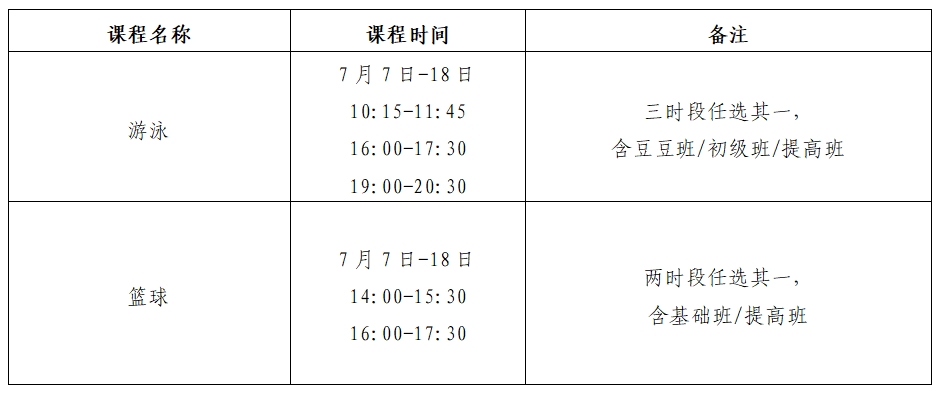 3.体育课程仅限北校区,学员需自行购买运动意外保险。
